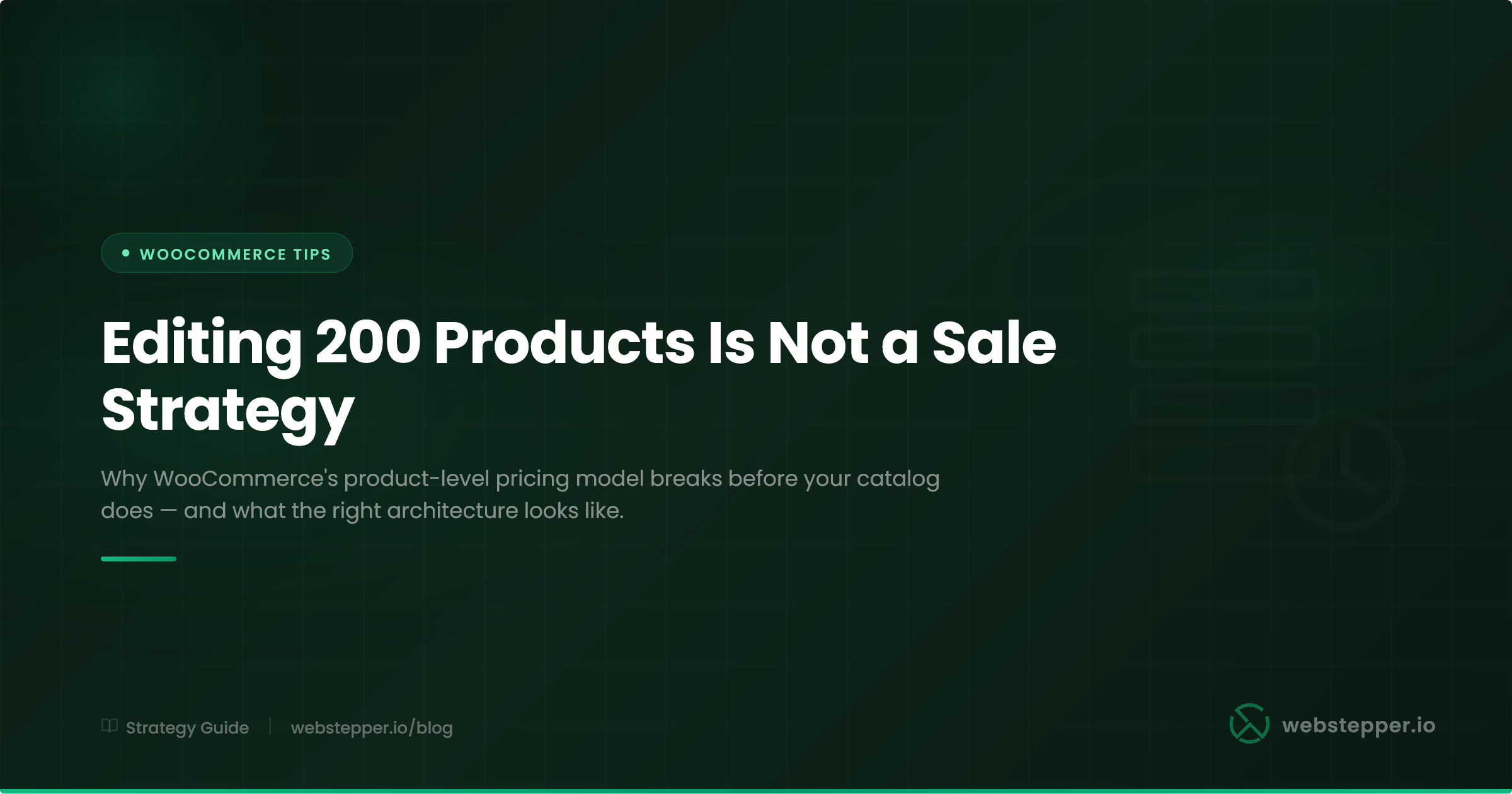 This isn’t a criticism of WooCommerce β it’s a correct tool being used for something it wasn’t built to do. The product-level sale price is the right place to store a permanent or long-running markdown. It’s the wrong place to manage time-boxed promotions at scale.
